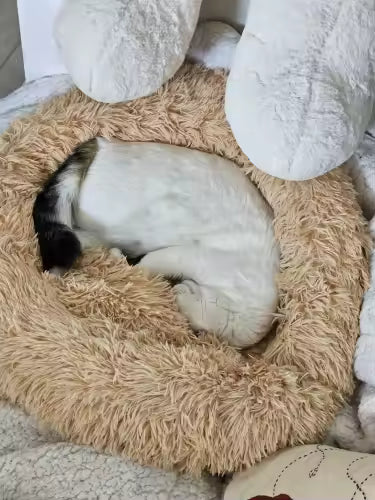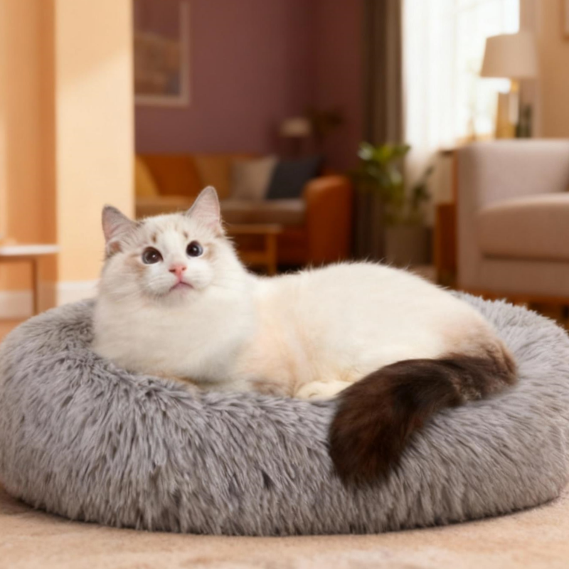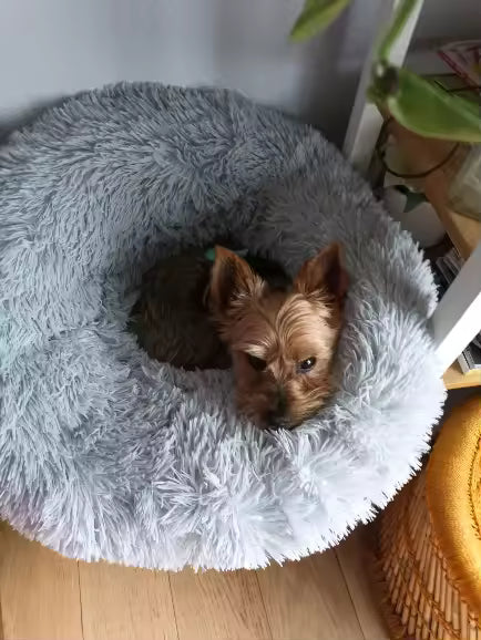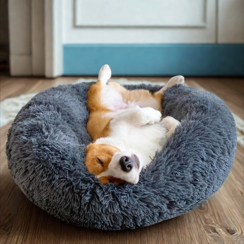 Legowisko PanFutrzak™ posiada charakterystyczny okrągły kształt typu „donut”, który delikatnie otula zwierzę, zapewniając mu poczucie bezpieczeństwa i sprzyjając głębokiemu, regenerującemu snu. Podwyższone, miękkie krawędzie umożliwiają wygodne oparcie głowy i idealne ułożenie ciała, co zmniejsza napięcie i relaksuje mięśnie.